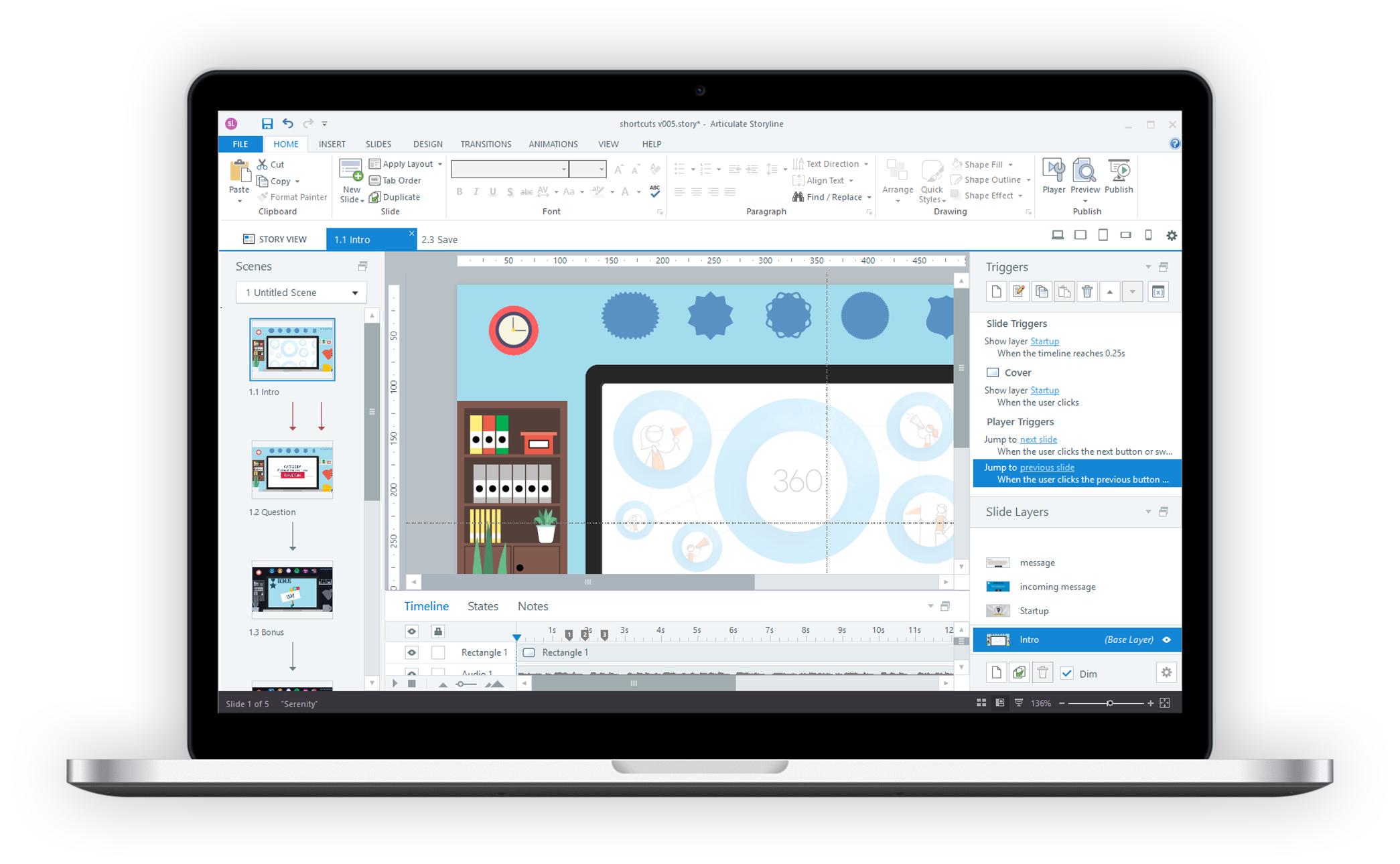 The templates have been created by Stephanie Harnett Senior Digital Learning Specialist, Articulate MVP and beta team member. As a consultant, coach, designer, and developer, Stephanie spend her days linking great content with technology to create useful and interesting learning for clients worldwide.